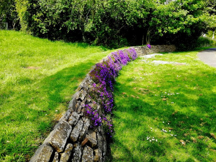 Well I decided to go super simple and very local, with the arch of an old stone bridge and a curving, campanula-covered slate wall from my weekend’s countryside walk with Audrey…