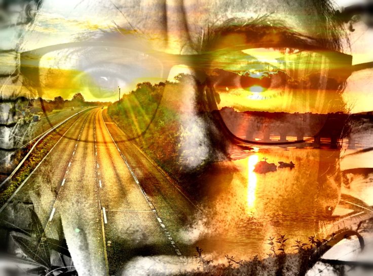 …then a journey home; with a shot of the sun rising behind me over the motorway, as I drove home early one morning, paired with a sunset over the river in Barnstaple.