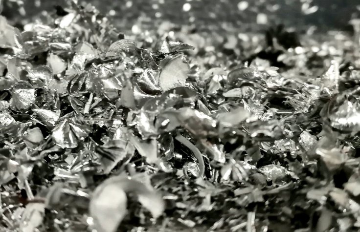 A couple of contrasting plants on the kitchen windowsill; one of this weekend’s batch of my homemade muffins (cranberry, goji berry, sunflower seed, lemon and cornmeal, recipe on request, should you be interested); a pebble-dashed wall, with varied focus, giving a soft and hard texture in one photo; some aluminium swarf from inside the CNC machine at work, and the rubber safety mat in front of it.