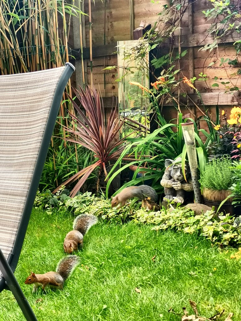 Then we come to the inevitable mucking about section; starting with a composite image of three lucky consecutive shots of a squirrel I captured, as he jumped out of the flowerbed…