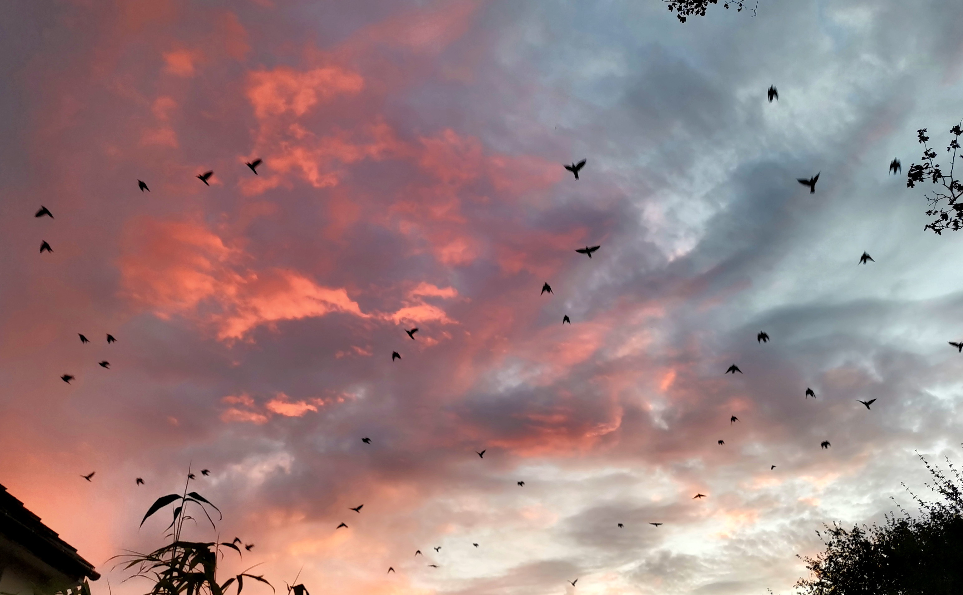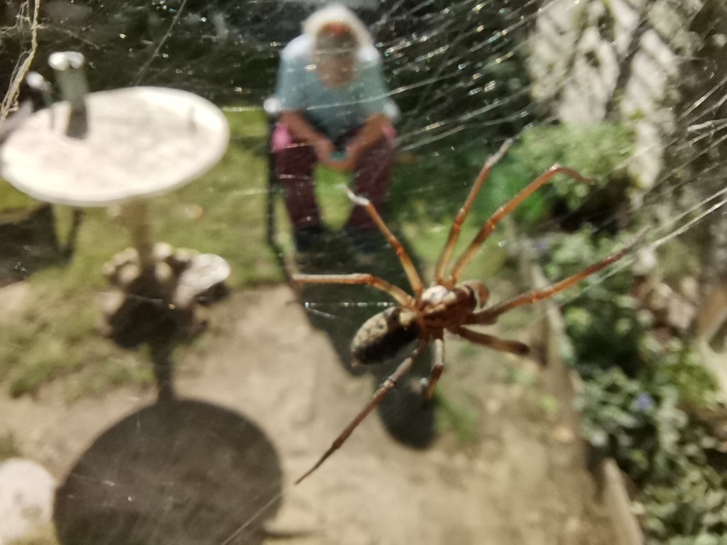 …followed by an interesting view of a spider in the shed and a shot of the local crows coming home to roost.